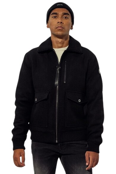 Jacheta barbati neagra, poliester, cu fermoar, cu buzunare, sezon toamna-primavara,