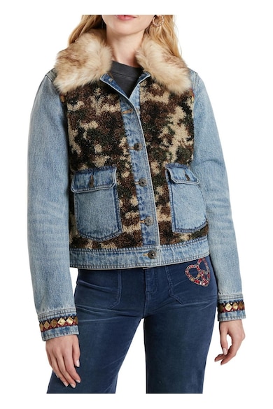 Jacheta din denim cu insertii camuflaj Wild Glam,