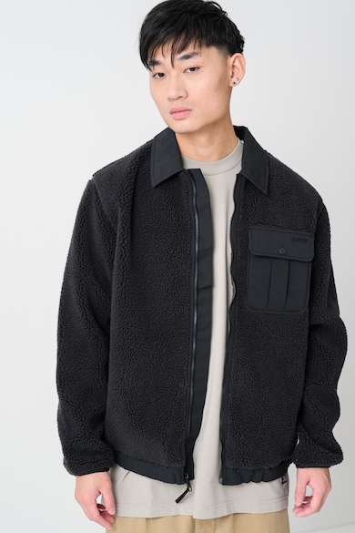 Jacheta din material teddy cu fermoar si buzunar pe piept