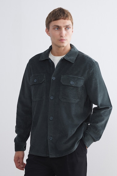 Jacheta striata cu buzunare cu clapa si nasturi
