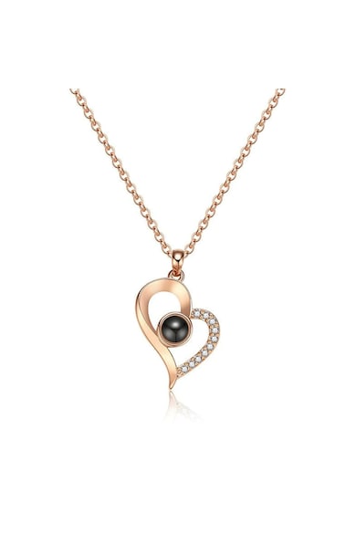 Lantic dama, proiectie Te iubesc in 100 limbi, pandantiv inimioara, cristale incastrate, EFAYN