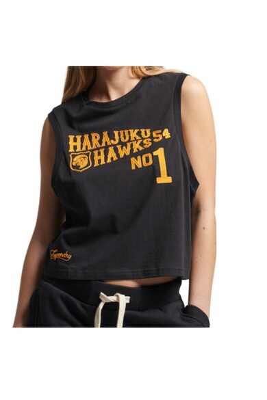 Maiou dama, Superdry, negru, bumbac, broderie, fara maneci,