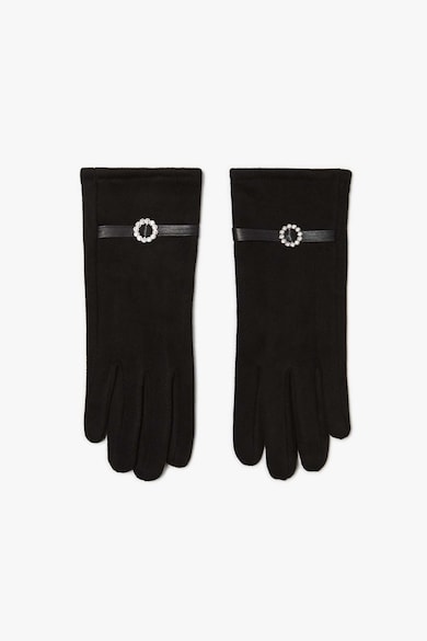 Manusi femei, negre, curea decorativa, cristale, din suede