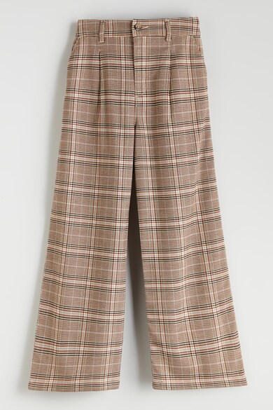 Pantaloni cu model in carouri si talie elastica pe partea din spate