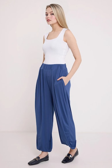 Pantaloni dama, croiala larga, albastru inchis, poliester-elastan