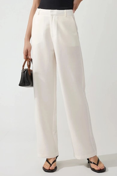 Pantaloni dama, largi, croiala lejera, alb, textil