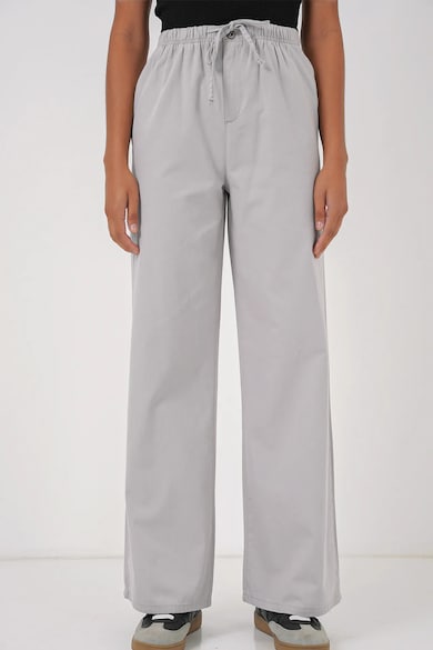Pantaloni dama, largi din bumbac cu talie inalta si snur, gri