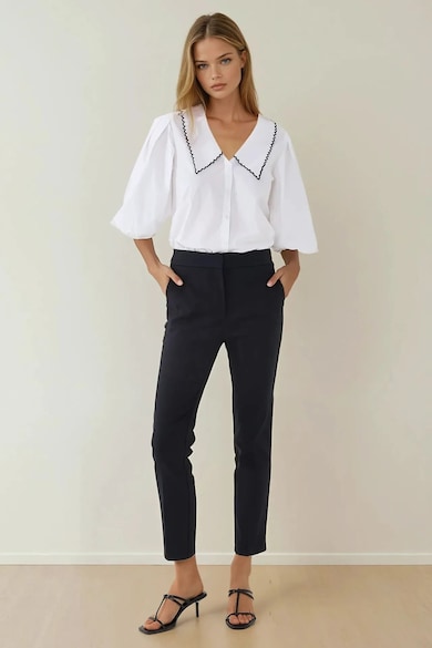 Pantaloni dama, model tigara, talie inalta, albastri, bumbac