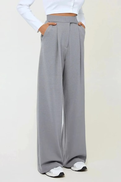 Pantaloni dama, Palazzo, textil, talie inalta, picioare largi, gri, crep elastic