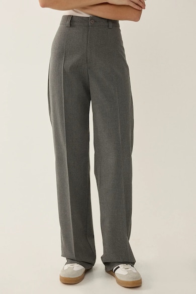 Pantaloni dama, talie inalta, gri, poliester-viscoza