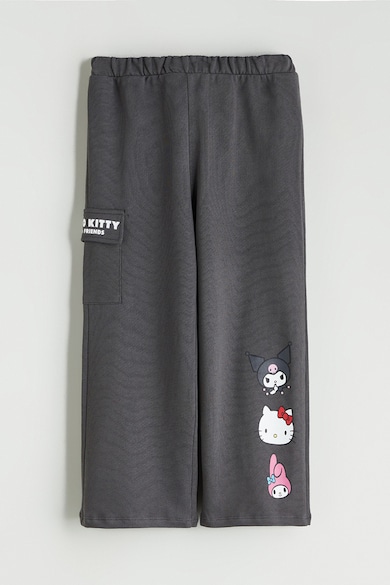 Pantaloni de trening cu croiala dreapta si imprimeu Hello Kitty