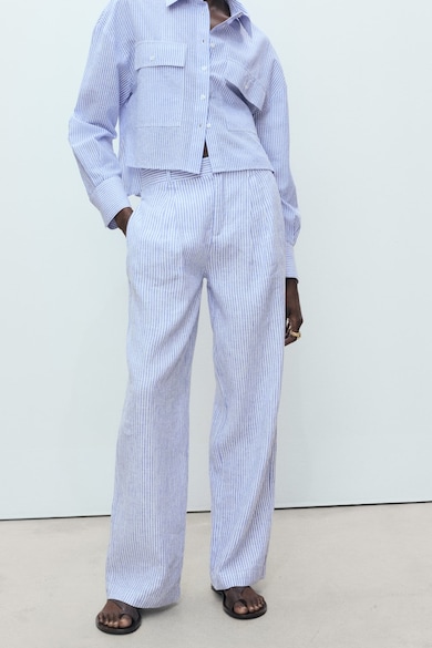 Pantaloni din amestec de in cu model in dungi si croiala dreapta