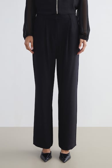 Pantaloni relaxed fit cu croiala dreapta si pliuri