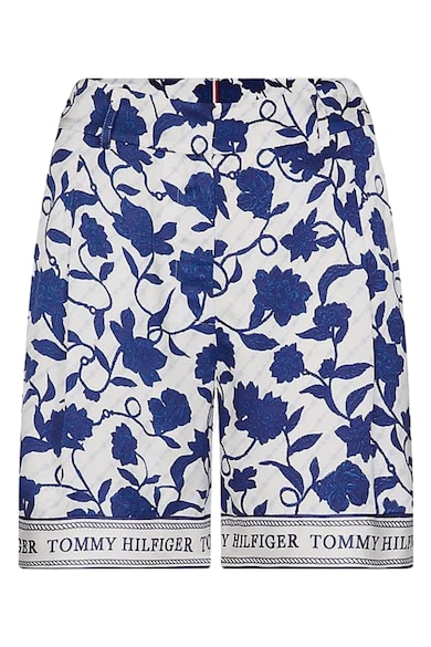 Pantaloni scurti dama bleumarin, 100% vascoza, model floral, lungime sub genunchi,