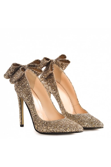 Pantofi Stiletto cu toc subtire Cleopatra, sclipici auriu