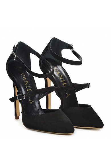 Pantofi Stiletto cu toc subtire Dora, piele naturala intoarsa, negri