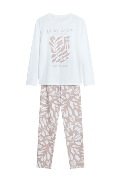 Pijama dama care combina confortul si stilul datorita aspectului lor modern si modelului floral in culori alb cream si bej, Dextra