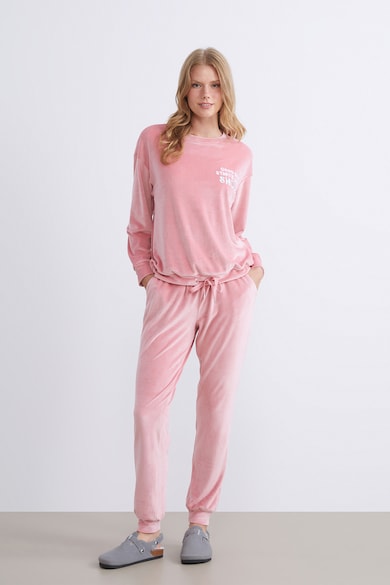 Pijama de catifea cu text