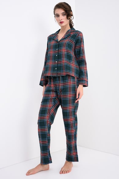 Pijama in carouri, din bumbac, cu decolteu in V Ponderosa