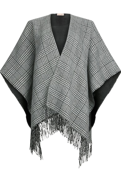 Poncho in carouri cu franjuri
