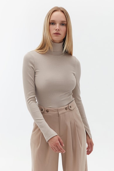 Pulover cambrat uni cu guler inalt