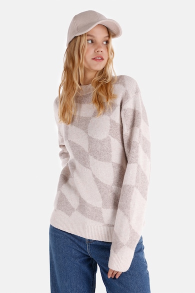 Pulover cu decolteu la baza gatului si model abstract