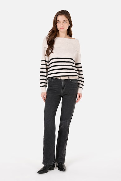 Pulover cu model in dungi si decolteu barcuta