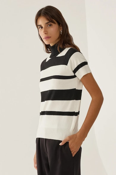 Pulover dama, top tricotat cu guler inalt, dungi, negru, tricot
