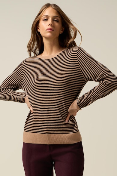 Pulover din amestec de lana cu model in dungi si mansete cu slit