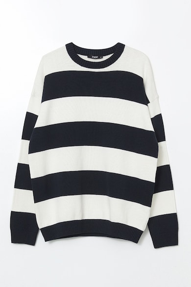 Pulover din bumbac cu decolteu la baza gatului si dungi
