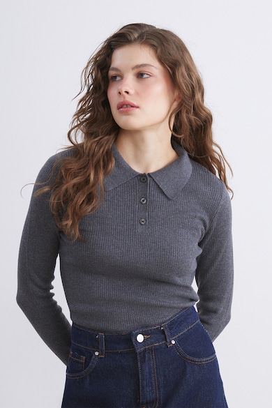 Pulover slim fit cu fenta cu nasturi