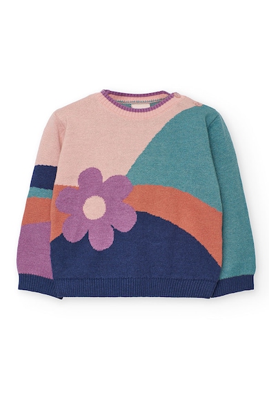 Pulover tricotat cu detaliu floral si model colorblock