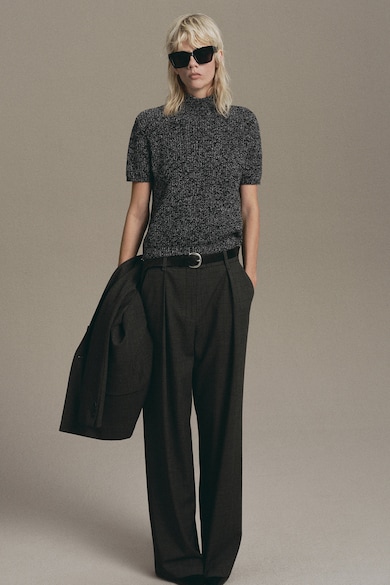 Pulover tricotat cu maneci scurte si guler inalt