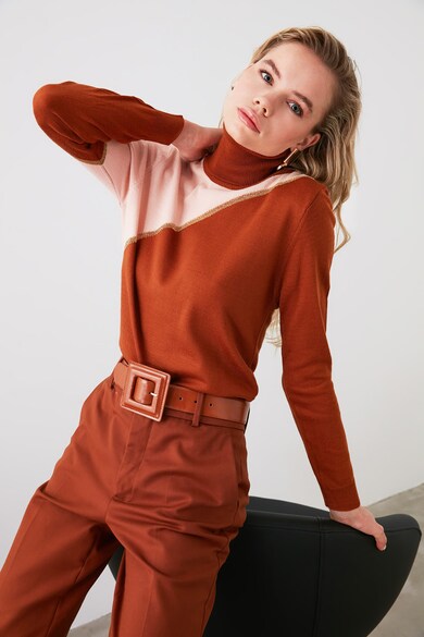 Pulover tricotat fin cu model colorblock