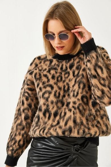 Pulover tricotat, imprimeu leopard, material acril-poliamida-polibutilena,