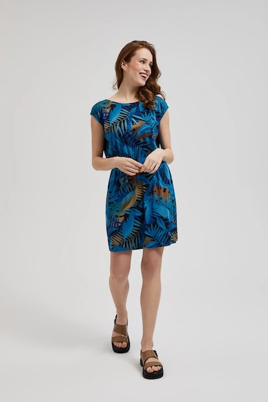 Rochie albastra cu imprimeu tropical si decolteu rotund
