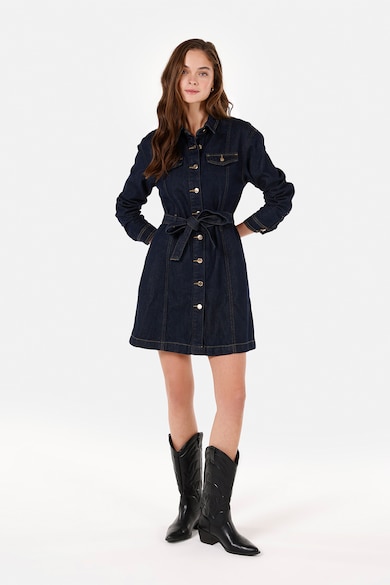 Rochie-camasa din denim cu cordon in talie