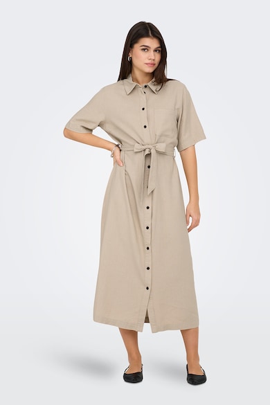 Rochie-camasa midi din amestec de in cu cordon in talie