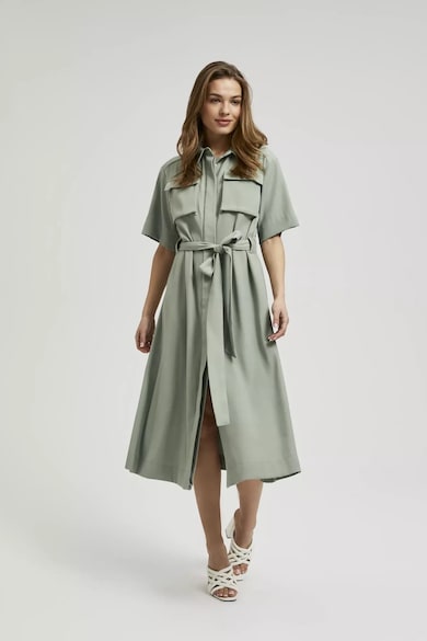 Rochie Camasa Verde Masliniu cu Maneci Scurte