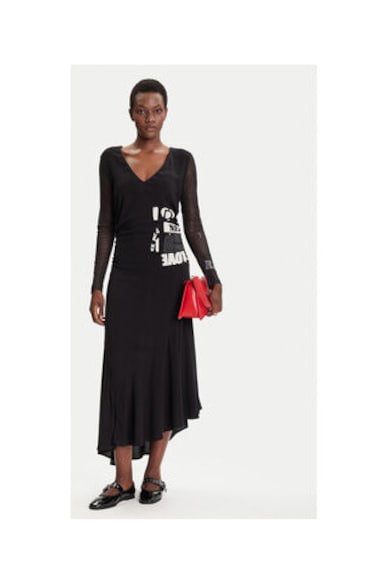 Rochie casual Dama, Negru, 91% viscoza, 8% poliester, 1% elastan,