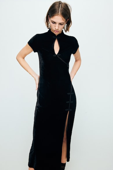 Rochie cu aspect de catifea si slit lateral