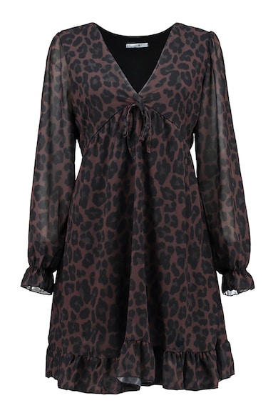 Rochie cu decolteu in V, model animal print si maneci lungi