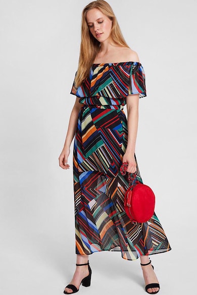 Rochie lunga cu terminatie semitransparenta si decolteu pe umeri