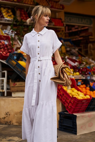 Rochie Maxi Alba din Bumbac cu Cureaua