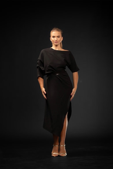 Rochie midi asimetrica cu o curea din piele
