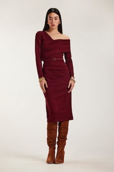 Rochie midi cu decolteu pe un umar si curea