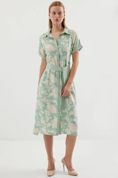 Rochie midi dama imprimeu floral, viscoza, verde/bej