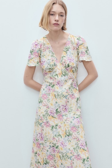 Rochie midi din amestec de in cu croiala in A si decolteu in V