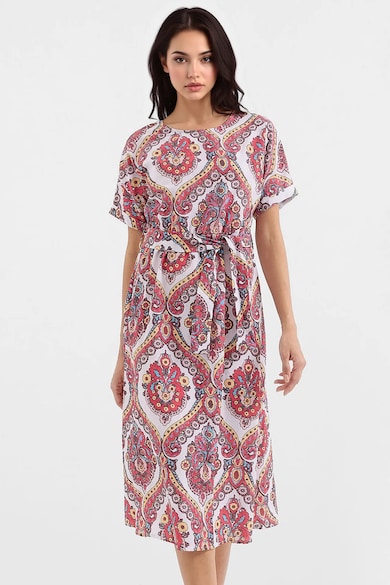 Rochie midi, imprimeu, papion, rosu, viscoza/in