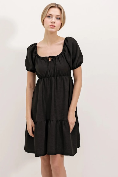 Rochie mini dama, decolteu patrat, bumbac/poliester, negru